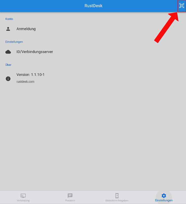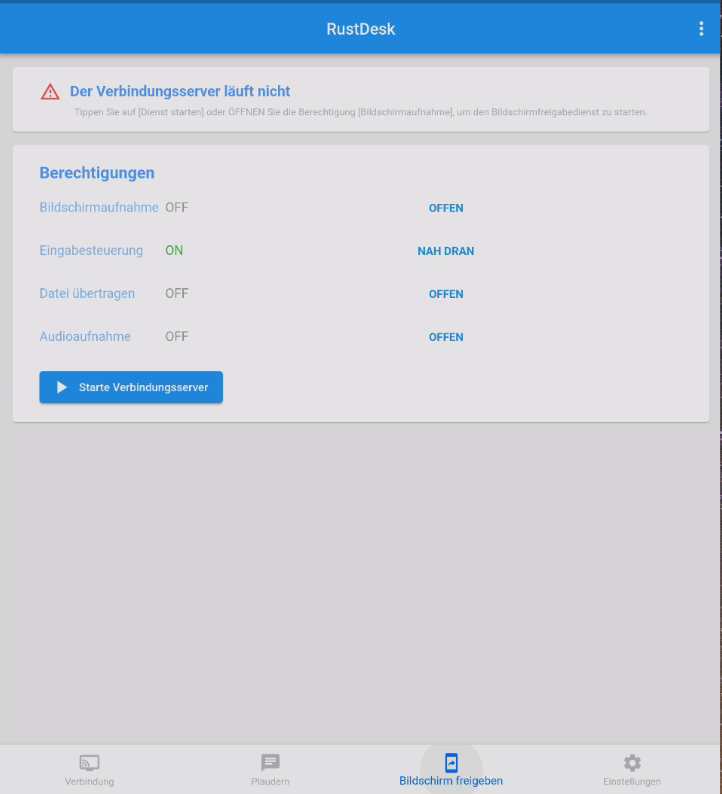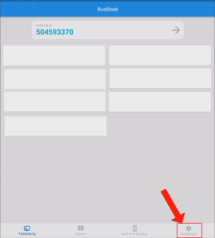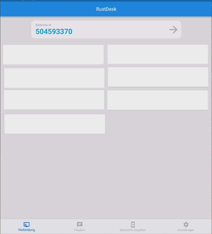 Sobald sie die Rustdesk APP öffnen, erscheint dieser Bildschirm.