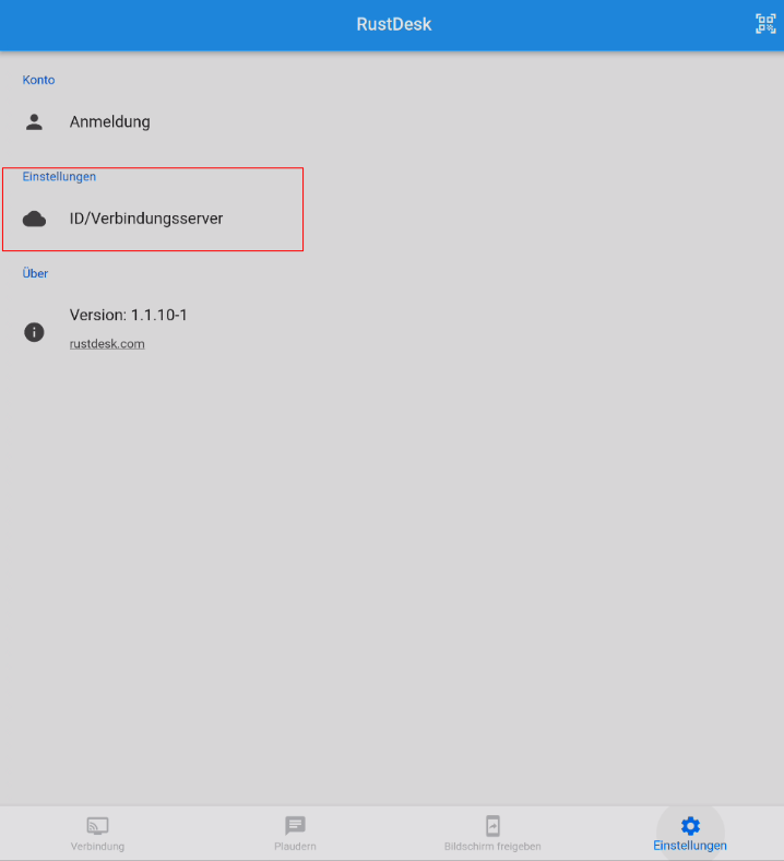 Über den Menüpunkt Einstellungen können sie den ID/ Verbindungserver einstellen. (siehe 2tes Bild)