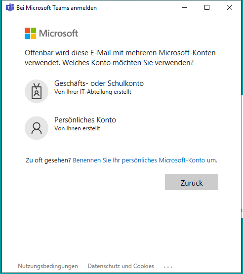 Wenn Sie Teams oder eine anderen Office365 App starten, kann es sein, dass Sie von dieser Software abgemeldet sind.